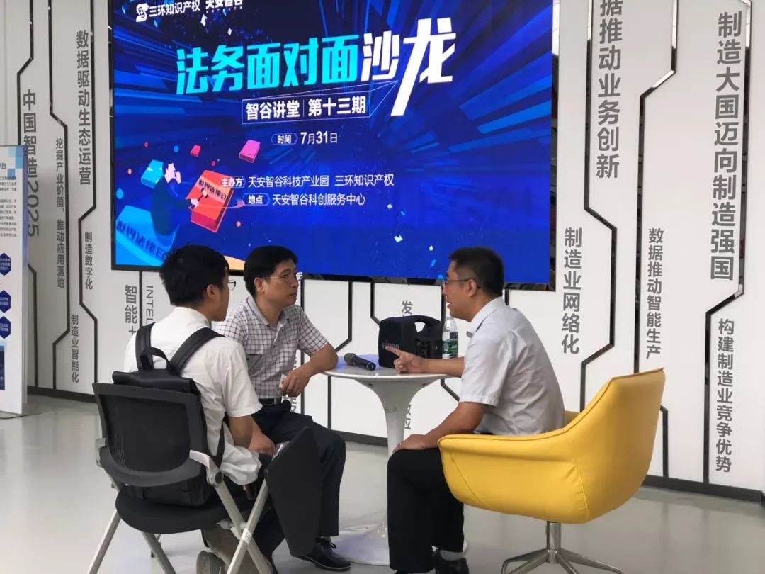 7月31日下午,廣州三環(huán)專利商標代理有限公司清遠分公司聯(lián)合天安智谷科創(chuàng)服務(wù)中心舉辦【百所千企——走進天安智谷科技園】法律沙龍活動。活動由北京大學(xué)法學(xué)學(xué)士、廣州三環(huán)專利商標代理有限公司隋喜鑫律師作分享交流。