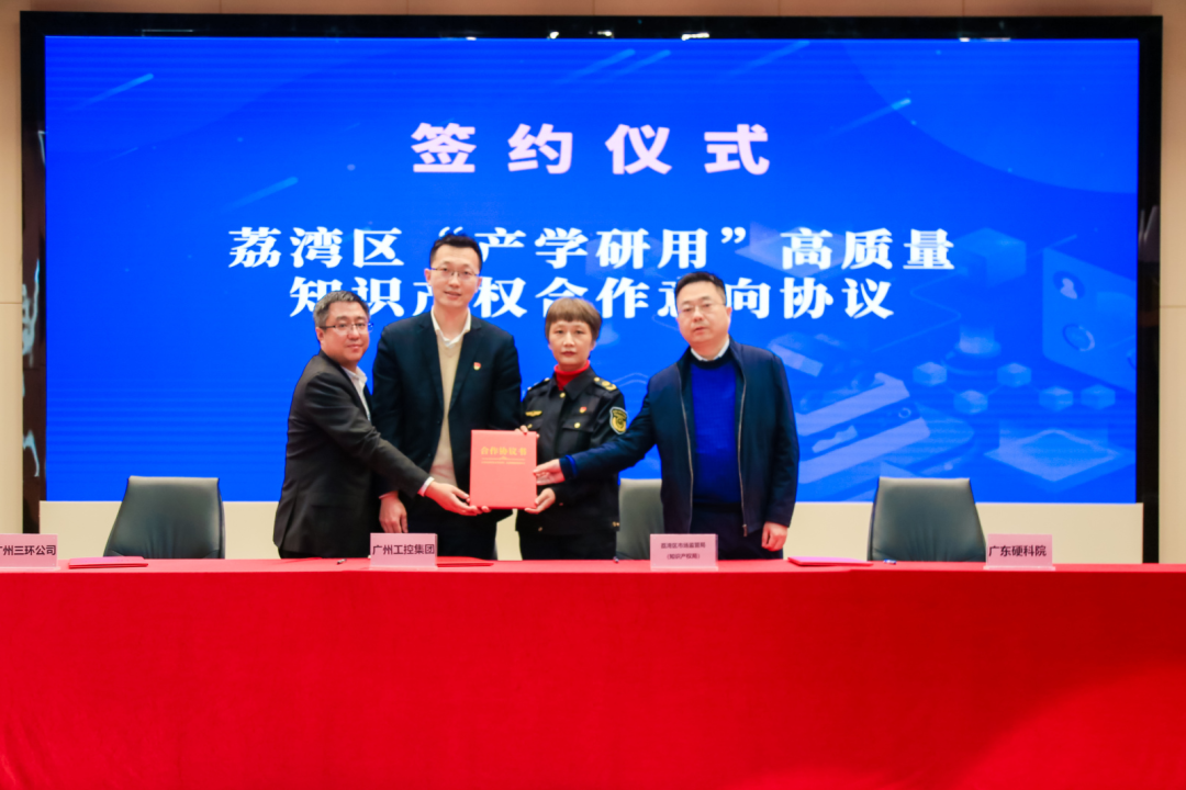 在本次活動中,三環與荔灣區市場監督管理局、廣州工業投資控股集團有限公司、廣東粵港澳大灣區硬科技創新研究院(以下簡稱“廣東硬科院”)共同簽訂了《荔灣區“產學研用”高質量知識產權合作意向協議書》,該協議以搭建荔灣區“產學研用”知識產權創造轉化平臺為目標,旨在探索政府、高等院校、科研院所、企業、知識產權服務機構在知識產權工作中的共贏模式,并確立四方在今后荔灣知識產權高質量發展工作中的合作意向。