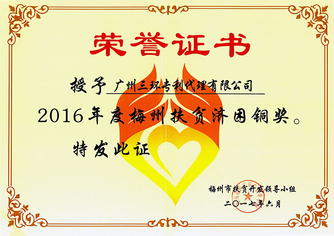 為樹(shù)立典型,弘揚(yáng)善舉,進(jìn)一步推動(dòng)梅州市深入開(kāi)展扶貧濟(jì)困工作,梅州市扶貧濟(jì)困領(lǐng)導(dǎo)小組對(duì)三環(huán)授予了“2016年度梅州扶貧濟(jì)困銅獎(jiǎng)”并贈(zèng)予錦旗,表彰三環(huán)在扶貧濟(jì)困工作中做出的突出貢獻(xiàn)。