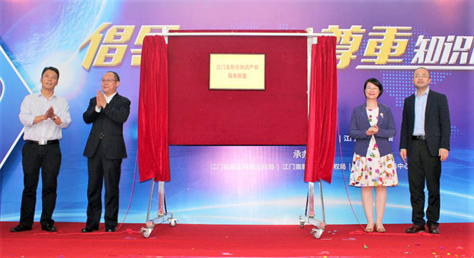 4月20日上午,江門高新區(qū)知識產(chǎn)權(quán)服務(wù)聯(lián)盟(以下簡稱“聯(lián)盟”)揭牌及簽約儀式在江門高新區(qū)順利舉行。三環(huán)江門分公司作為聯(lián)盟理事長單位應(yīng)邀參加本次活動,郝傳鑫總經(jīng)理作為公司代表出席活動,并與廣東省知識產(chǎn)權(quán)研究與發(fā)展中心(廣東省知識產(chǎn)權(quán)維權(quán)援助中心)副主任陳宇萍、江門高新區(qū)管委會副主任柯杰兵、江門江海區(qū)副區(qū)長龐晉山共同為聯(lián)盟揭牌。