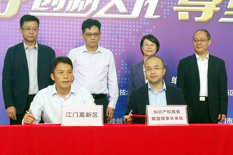 為充分發(fā)揮聯(lián)盟的資源整合優(yōu)勢與服務(wù)集聚效應(yīng),推動江門高新區(qū)知識產(chǎn)權(quán)與科技創(chuàng)新產(chǎn)業(yè)的發(fā)展,江門高新區(qū)和聯(lián)盟分別由龐晉山副區(qū)長和郝傳鑫總經(jīng)理作代表,在簽約儀式上簽署了戰(zhàn)略合作協(xié)議。